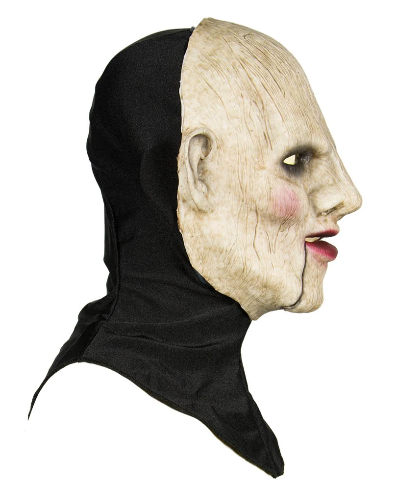 In Horrorfilmen werden Puppen und Bauchredner Puppen sehr gerne thematisiert und stehen als fiese Vertreter für das Böse. Die Silikon Halbmaske einer Bauchredner Puppe verwandelt dich an Halloween in eines dieser hinterhältigen, sehr gespenstisch aussehenden Exemplare. Mit dieser Maske kannst du eine sehr stabile Maske dein Eigen nennen, die sich besonders durch die exakte Übertragung der Mimik auszeichnet.