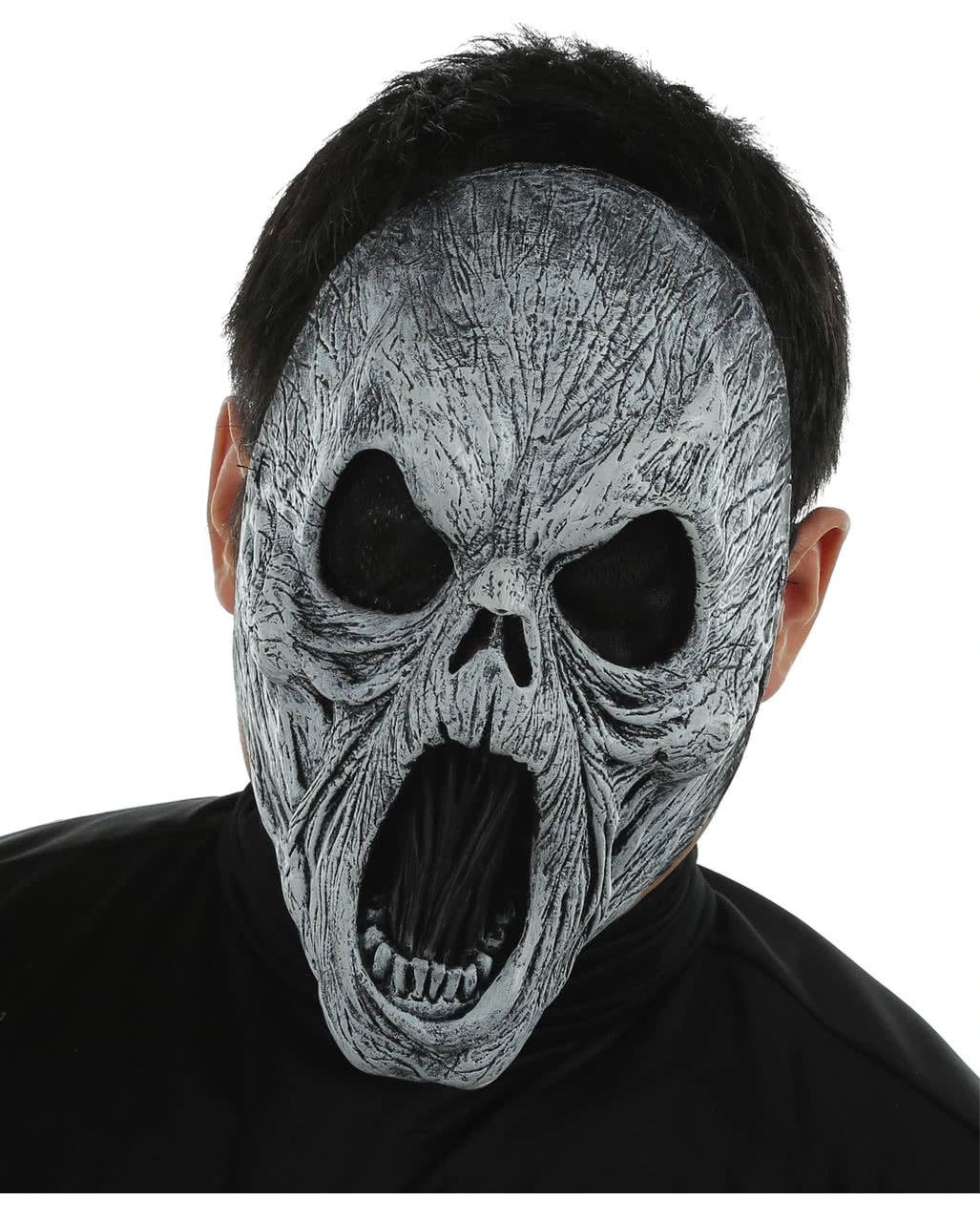 Die Screeming Ghost Maske ist eine robuste Vinyl Maske die sich am Hinterkopf mit einem Gummiband befestigen lässt. Die Augenöffnungen sind mit einem schwarzen Netz hinterlegt, was dafür sorgt, das der Träger optimale Sicht hat, man jedoch die Augen von Außen nicht erkennt. Faltige Vertiefungen und unterschiedliche Farbschattierungen tragen zusätzlich zur Authentizität dieser eindrucksvollen Maske bei. Ergänze es mit dem Reaper Umhang mit Kapuze