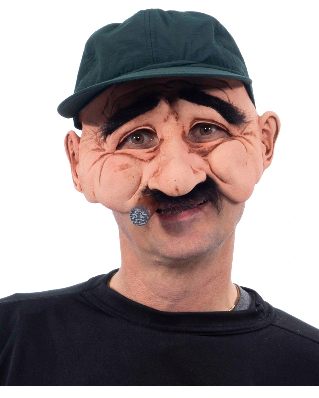 Super Stanley könnte ein verstoßener Halbbruder von Super Mario sein. Die gut sitzende Latexmaske mit schwarzen buschigen Theo Weigel Augenbrauen und dicken Schnauzbart besitzt eine angenähte bunte Baseballmütze und hat eine dicke Zigarre im Mundwinkel.
