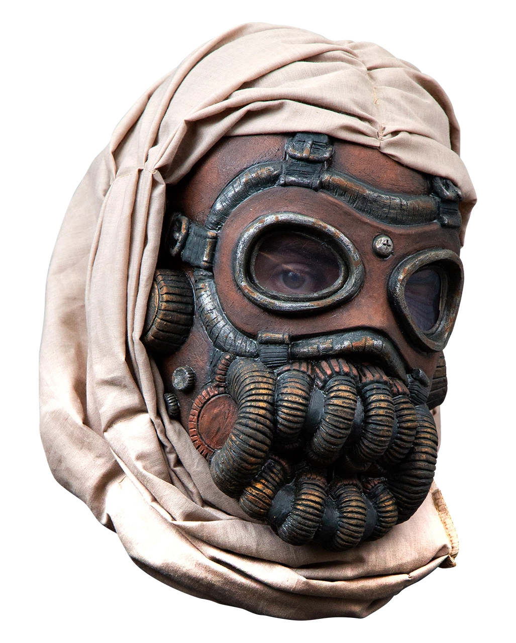 Die Wüstenläufer LARP Maske besticht durch ihre hochwertige Verarbeitung. Optisch entspricht die Halloween-Maske einer futuristischen Gasmaske mit applizierten Schläuchen und Nieten auf einer metallisch wirkenden Oberfläche. Der Besatz aus echtem Stoff erinnert sofort an die Kopfbedeckungen beispielsweise der Beduinen und gibt dich somit sofort als Wüstenläufer zu erkennen. Perfekt integrierte Aussparungen für Augen und Nase erhöhen den Tragekomfort des Kostüm-Accessoires. Dazu passen die Futuristische Steampunk Pistole und der Gehstock in Holzoptik.